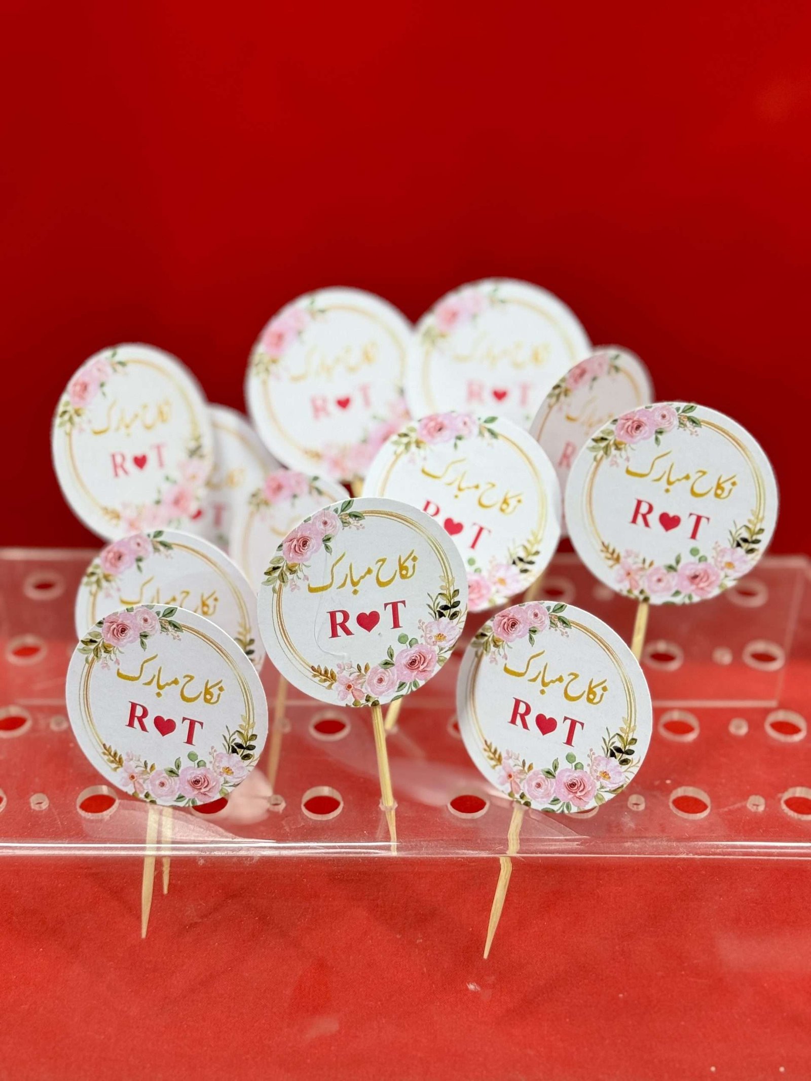 Due e Khair Mithai Toppers in Pink and offwhite (Pack of 12)