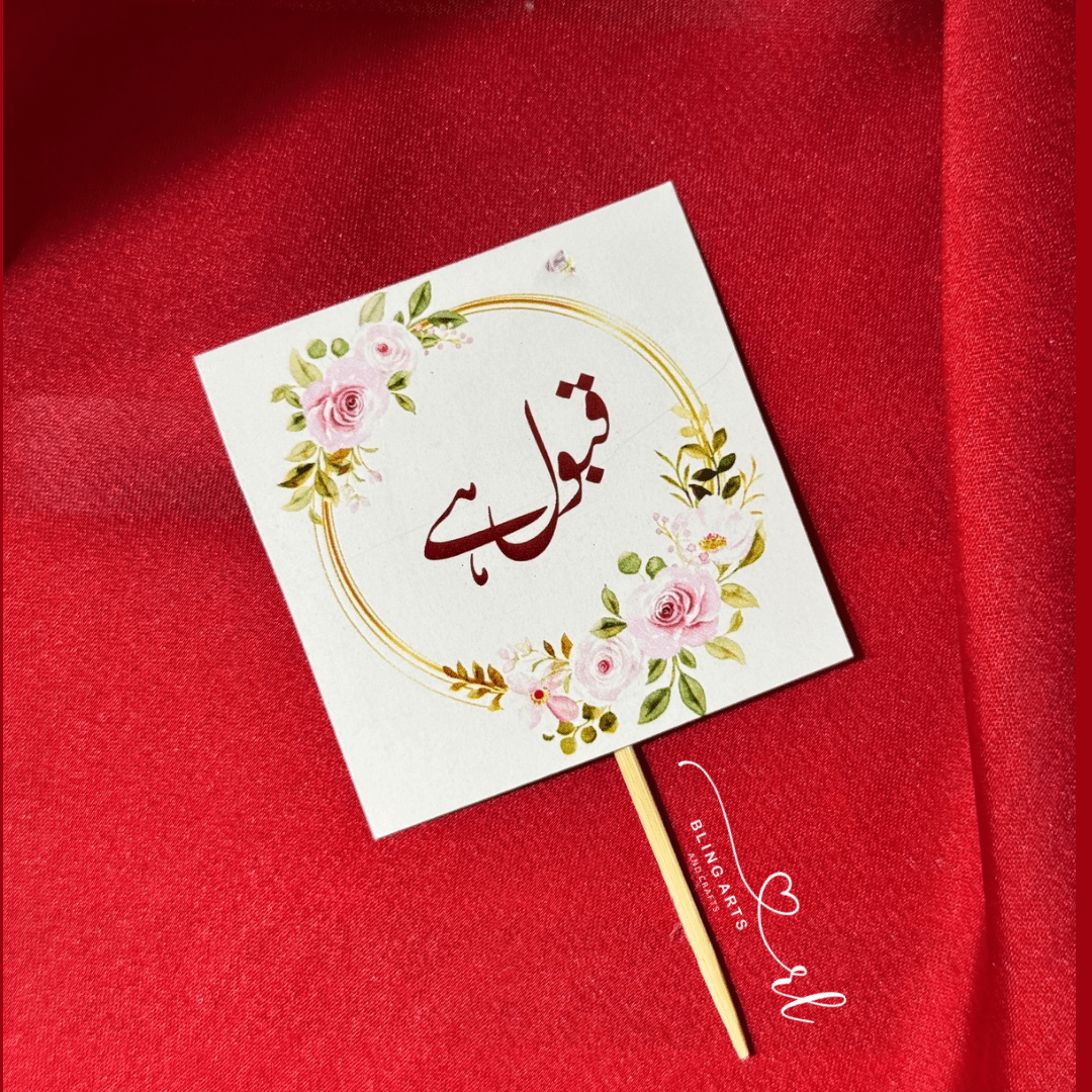 Square Qabool Hai Mithai Topper in Pink (Pack of 12)