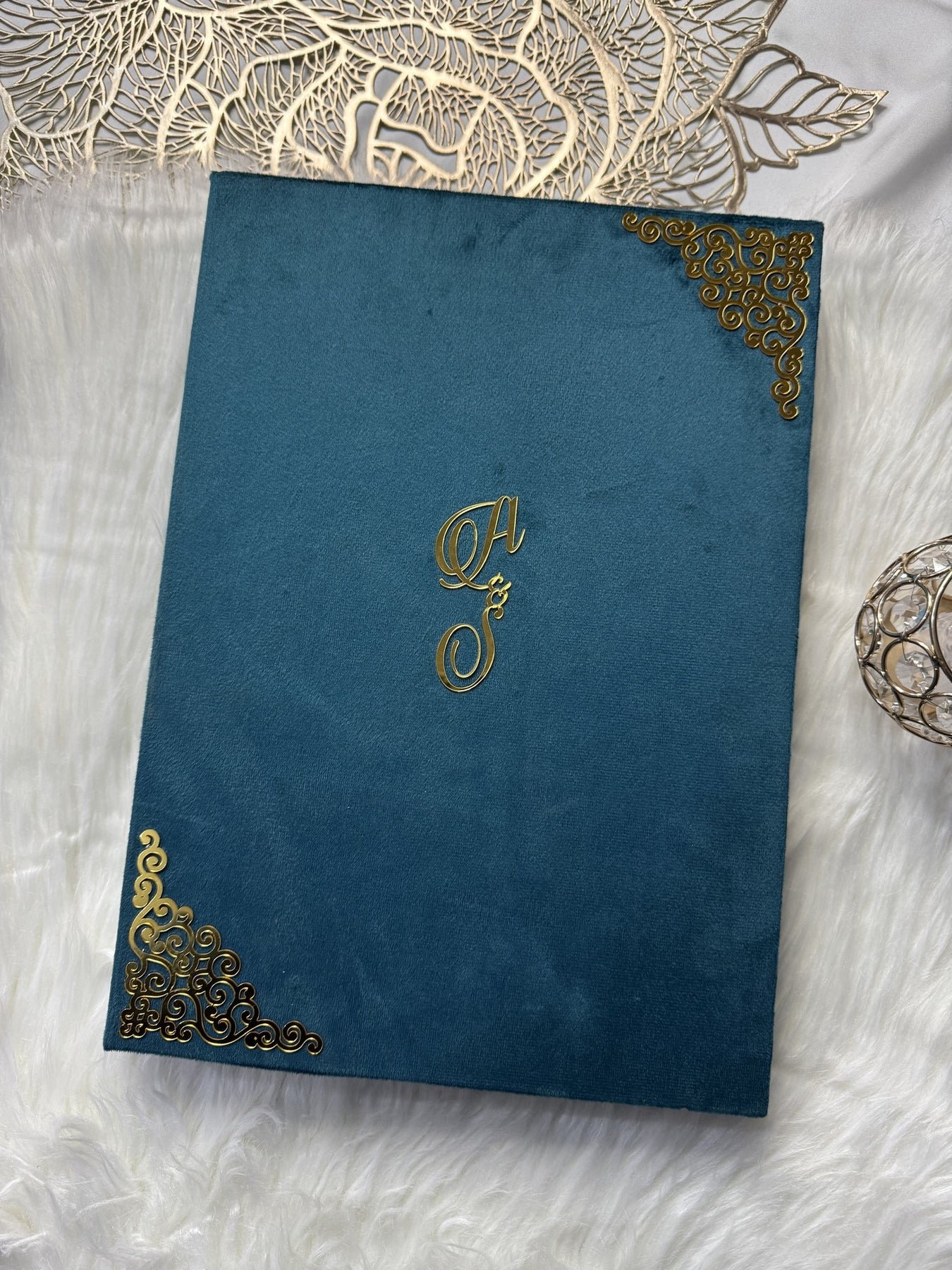 Add a touch of sophistication to your Nikkah ceremony with our luxurious Zinq booklet, crafted with exquisite self-design velvet fabric in a rich blue shade.