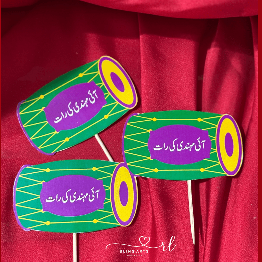 Dholki Mithai Toppers in Yellow (Pack of 12)